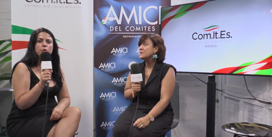 Gabriella Lanzilli, consigliera e segretaria del ComItEs di Madrid, intervista a Isabel Turrillo, titolare della Turrillo Global Service. Evento organizzato a Casa Italia ComItEs Madrid all'interno di Passione Italia.